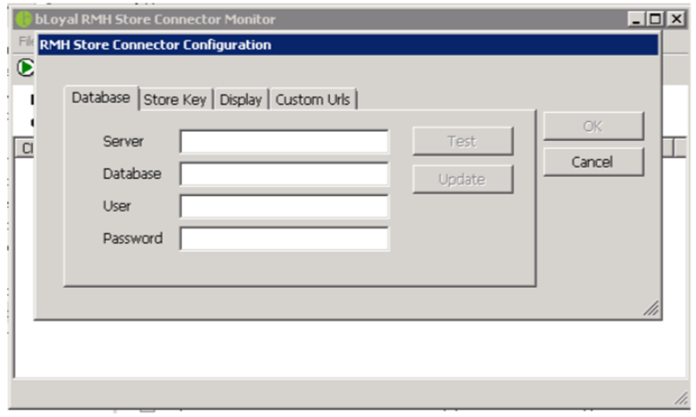 7. Under “Database” menu, it will show the Database details that needs to be configured in RMH Store Connector Configuration form.
